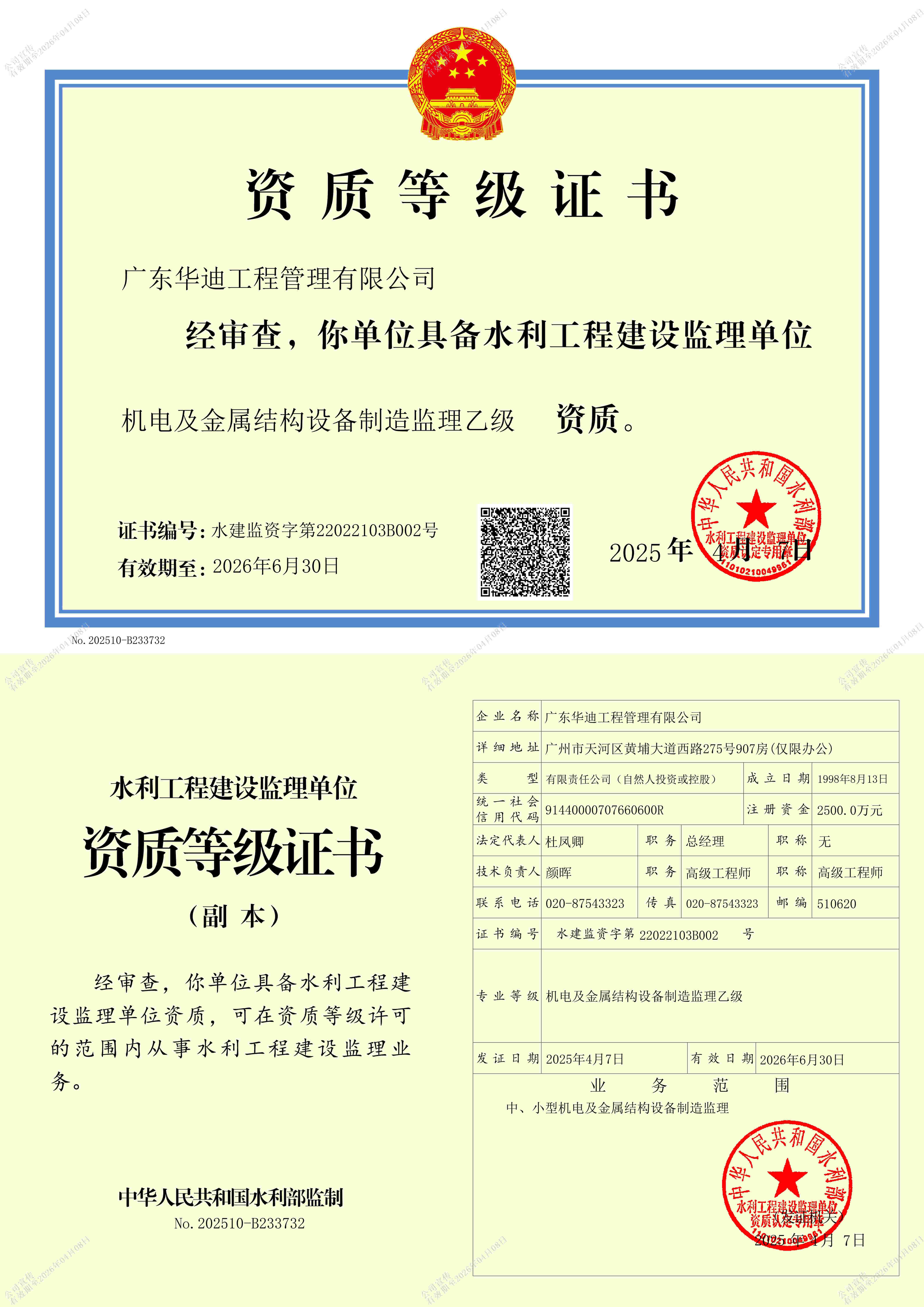 承擔所有專業工程類別建設工程項目的工程監(jiān)理業務;承接各級水利工程、Ⅱ等及以下各等級水土保持工程的施工監(jiān)理業務;中小型機電及金屬結構設備制造、各類各等級水利工程建設環(huán)境保護監(jiān)理;